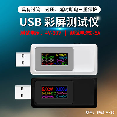 USB測試儀 | KWS-MX19 | 黑白兩色 | 測試手機和各種數(shù)碼產(chǎn)品的實際充電和電壓和電流,和充電容量,充電時間,一屏同顯 | 輸入/輸出電壓:3V-30V;輸入/輸出電流:0A- 3A;測試容量范圍:0-99999毫安;精度:正負1%;測試內(nèi)容:電壓、電流、放電流量;通信功能:有;定時:有;過流過壓保護:有 | 下載鏈接 |
