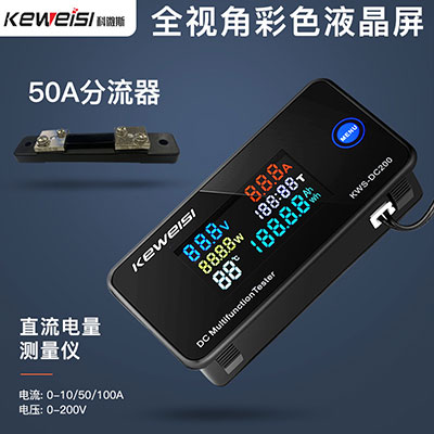 直流電能測試儀 | KWS-DC200-50A | 黑色 | 可測試各種直流電壓和電流 | 電壓:0-200V;電流:0-50A | 下載鏈接 |