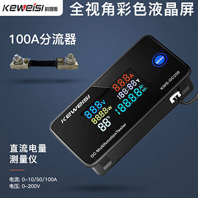 直流電能測試儀 | KWS-DC200-100A | 黑色 | 可測試各種直流電壓和電流 | 電壓:0-200V;電流:0-100A | 下載鏈接 |