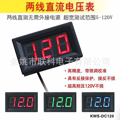 兩線DC5-120V電壓表 | KWS-DC120 | 紅字/藍(lán)字/翠綠字/白字 | 5-120V | 下載鏈接 | |