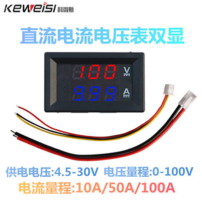 DC雙顯電壓電流表 | KWS-DC121 | 紅+藍(lán)顯示 | 用于測試電流和電壓 | 供電5-30V 測試電壓0-120V 測試電流0-10A | 下載鏈接 |