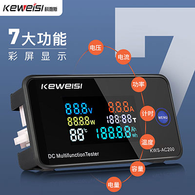 直流電能測試儀 | KWS-DC200-10A | 黑色 | 可測試各種直流電壓和電流 | 電壓:0-200V;電流:0-10A | 下載鏈接 |