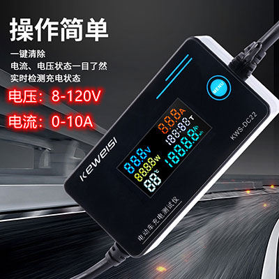 品字口充電測試儀 | KWS-DC22 | 黑色 | 高清彩屏+7大功能 | 測試范圍:電壓8-120V 電流0-10A | 下載鏈接 |